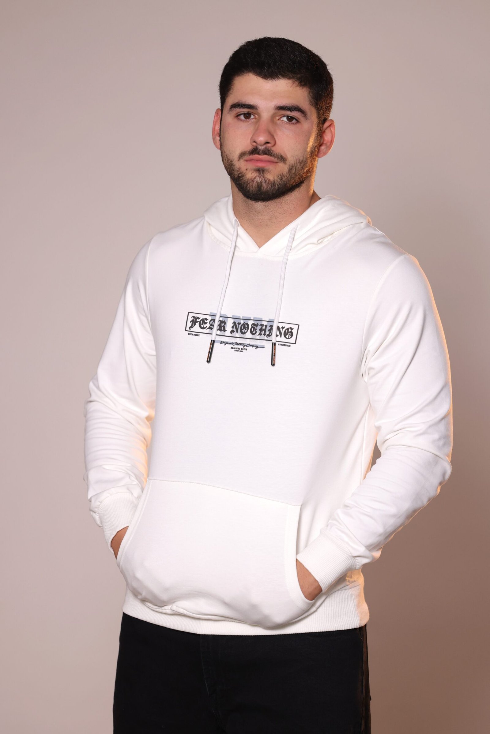 White Graphic Hoodie “FEAR NOTHING”