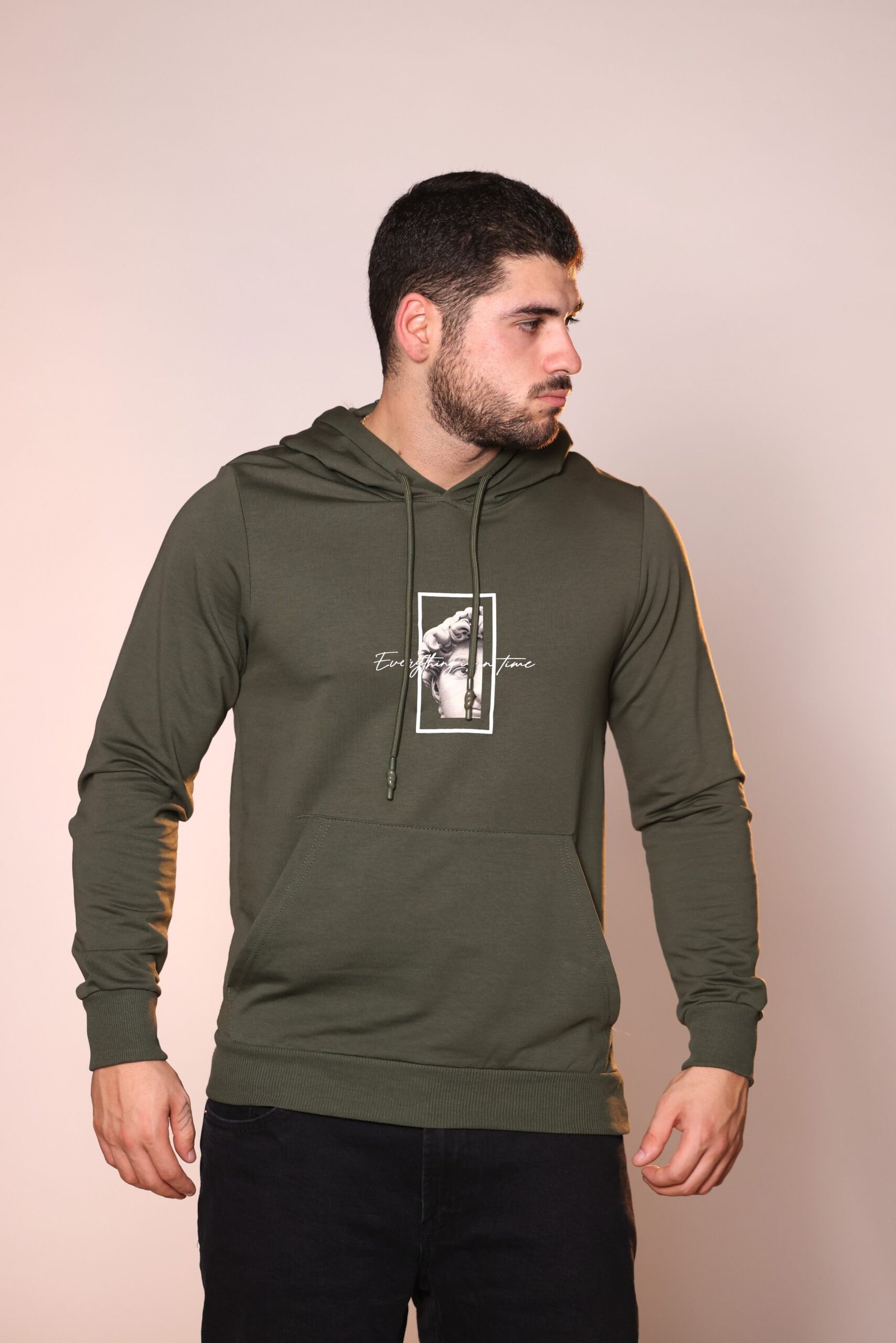 DARKGREEN HOODIE ”EVERYTHING IS IN TIME”
