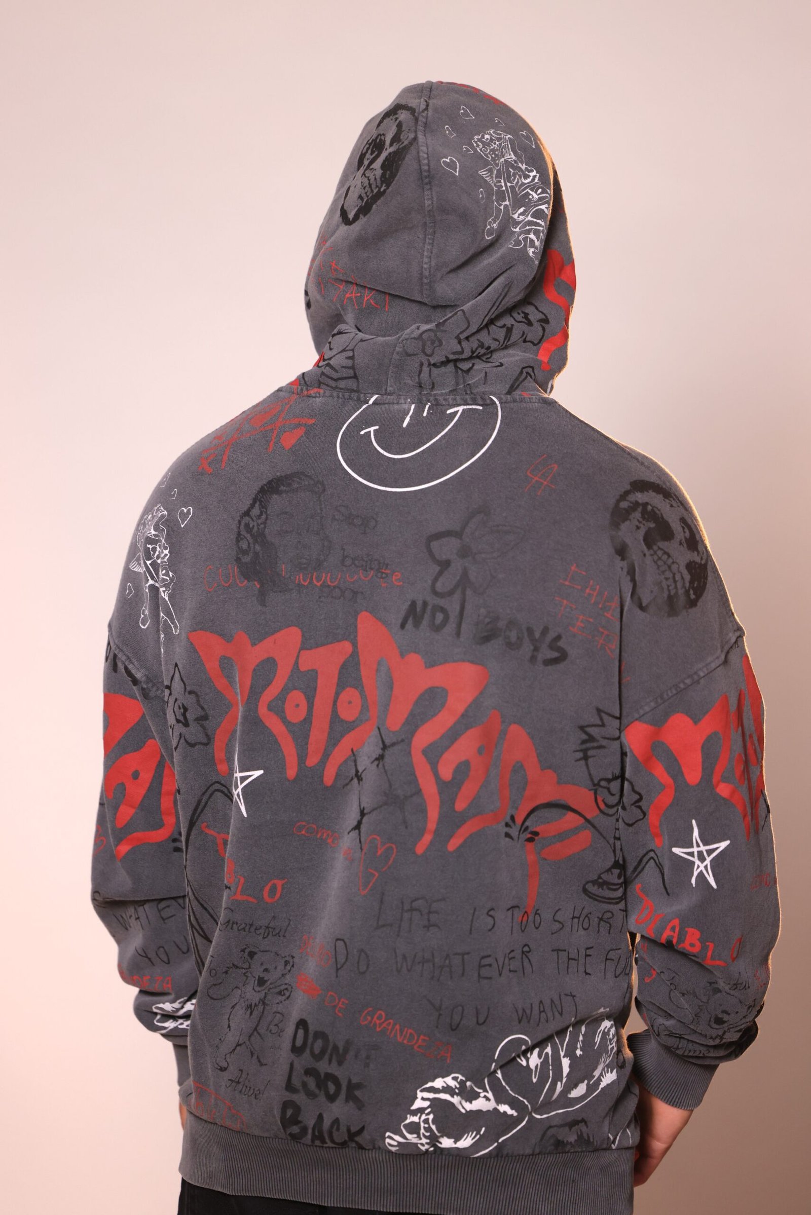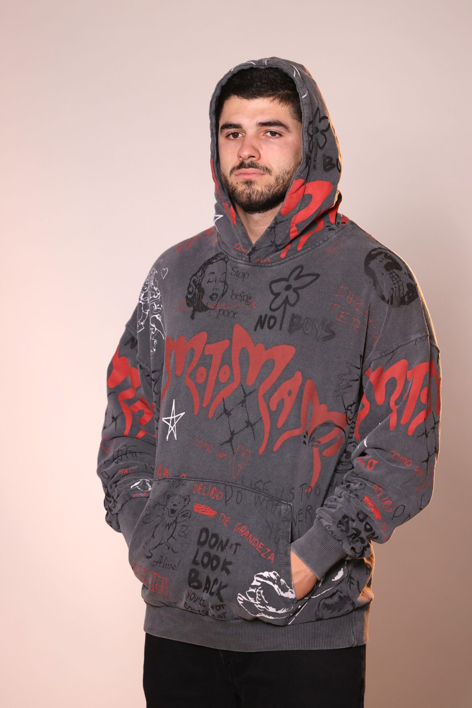 GREY HOODIE WITH GRAFFITI ARTWORKGREY HOODIE WITH GRAFFITI ARTWORK
